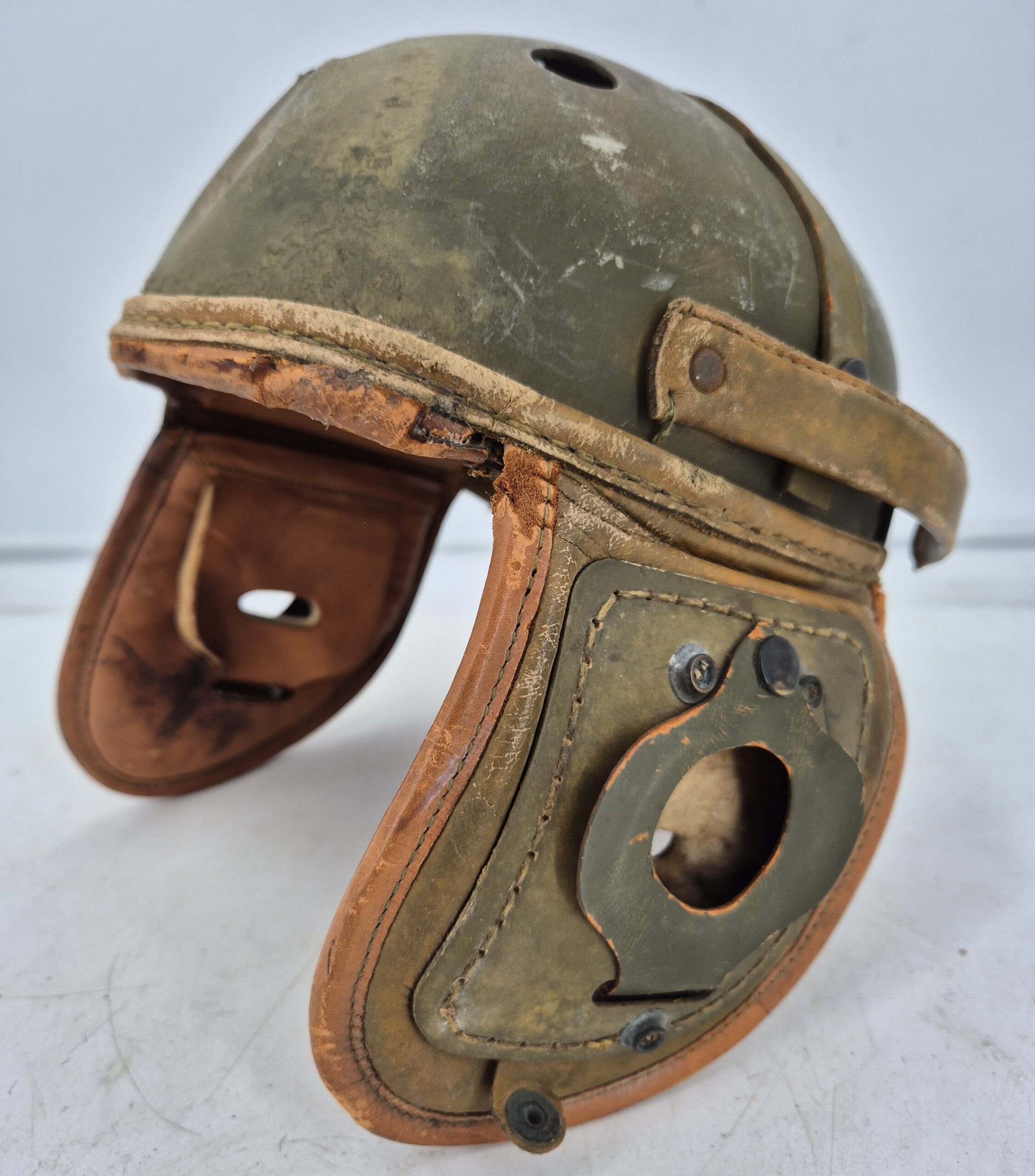 USA — ORIGINAL 2eme guerre — Casque de tankiste réglementaire US — Fabriqué par Rawlings –  peinture verte sur l’avant- joli « jus » -bel état-  voir dossier photos