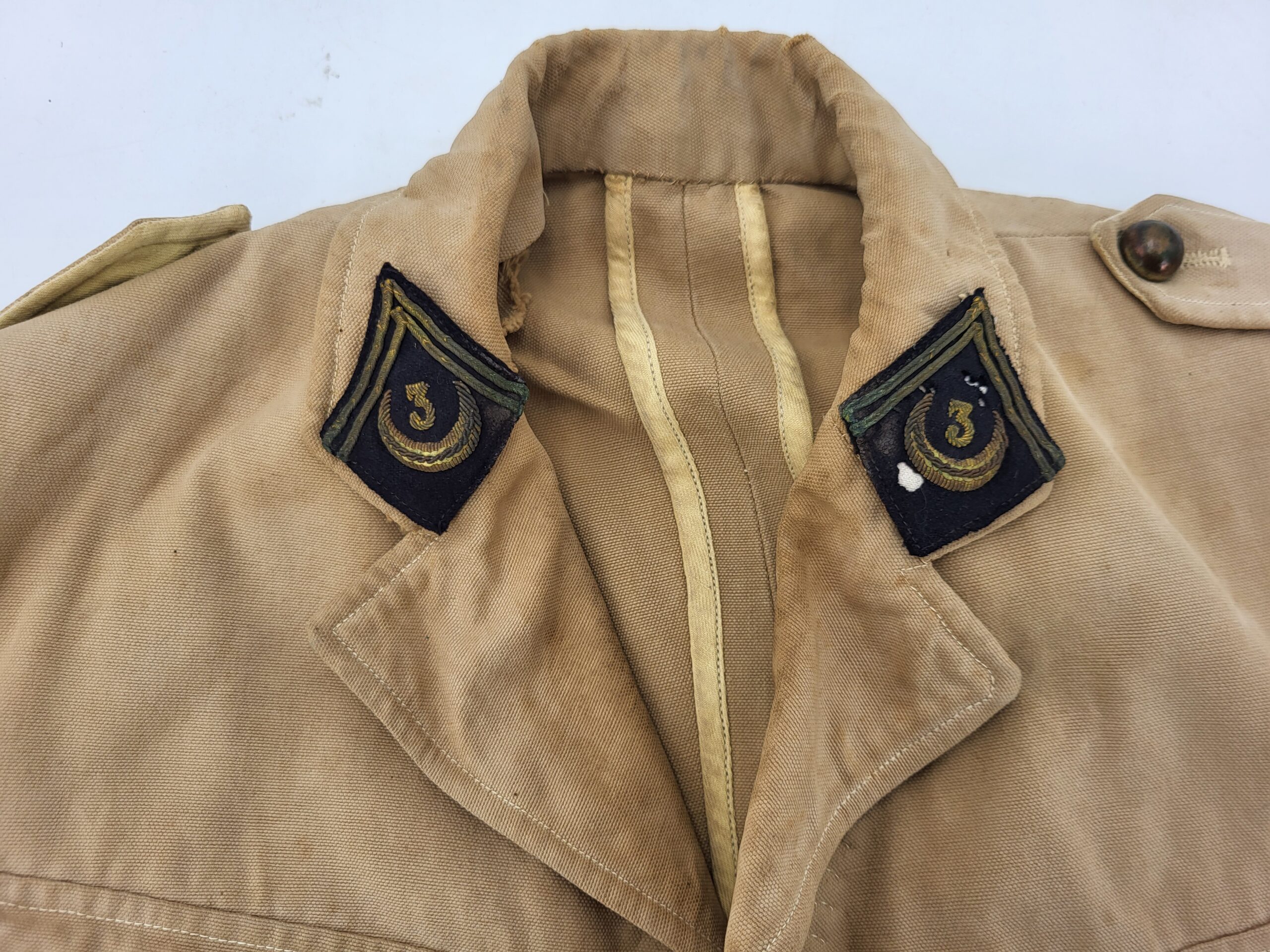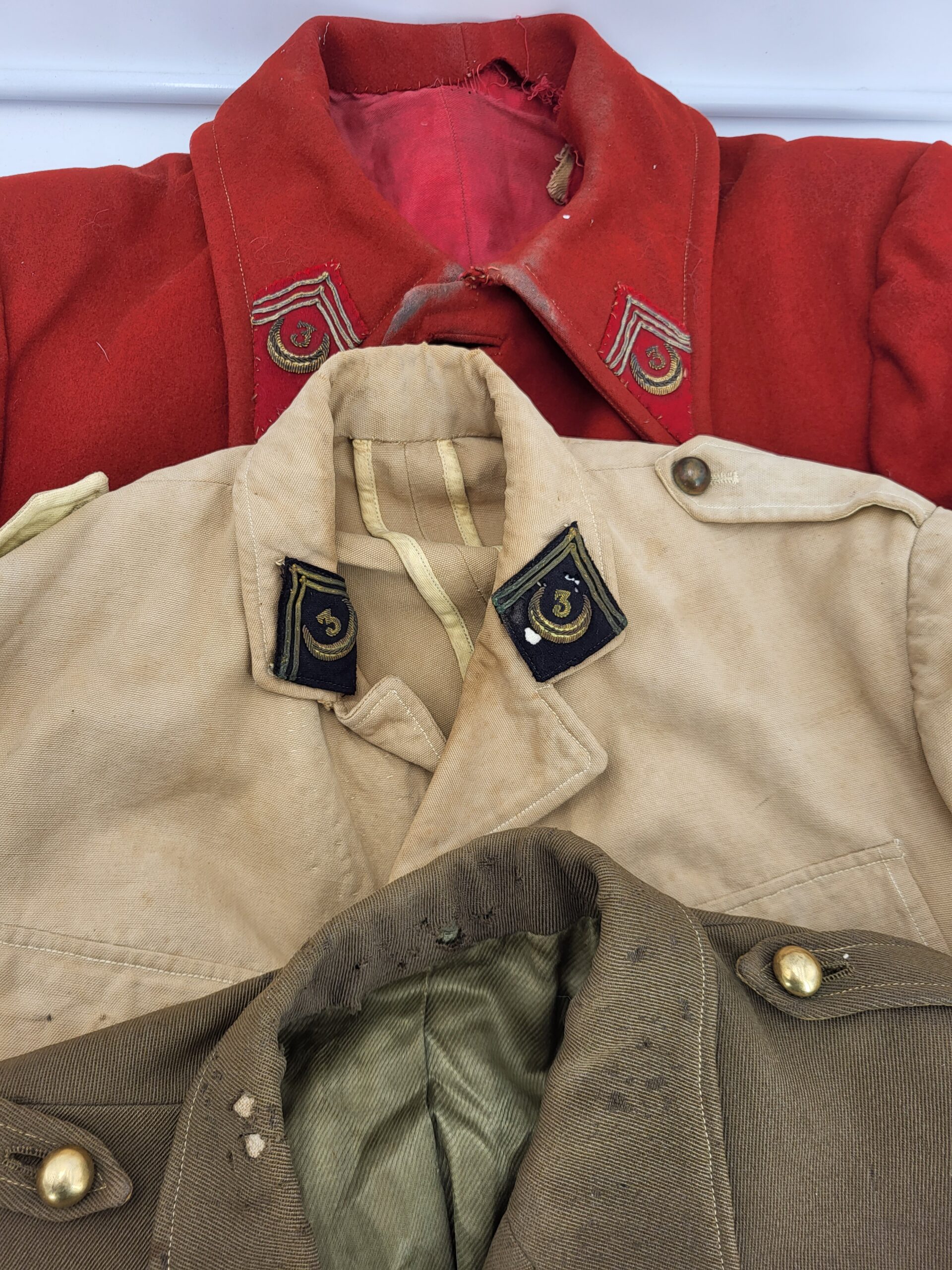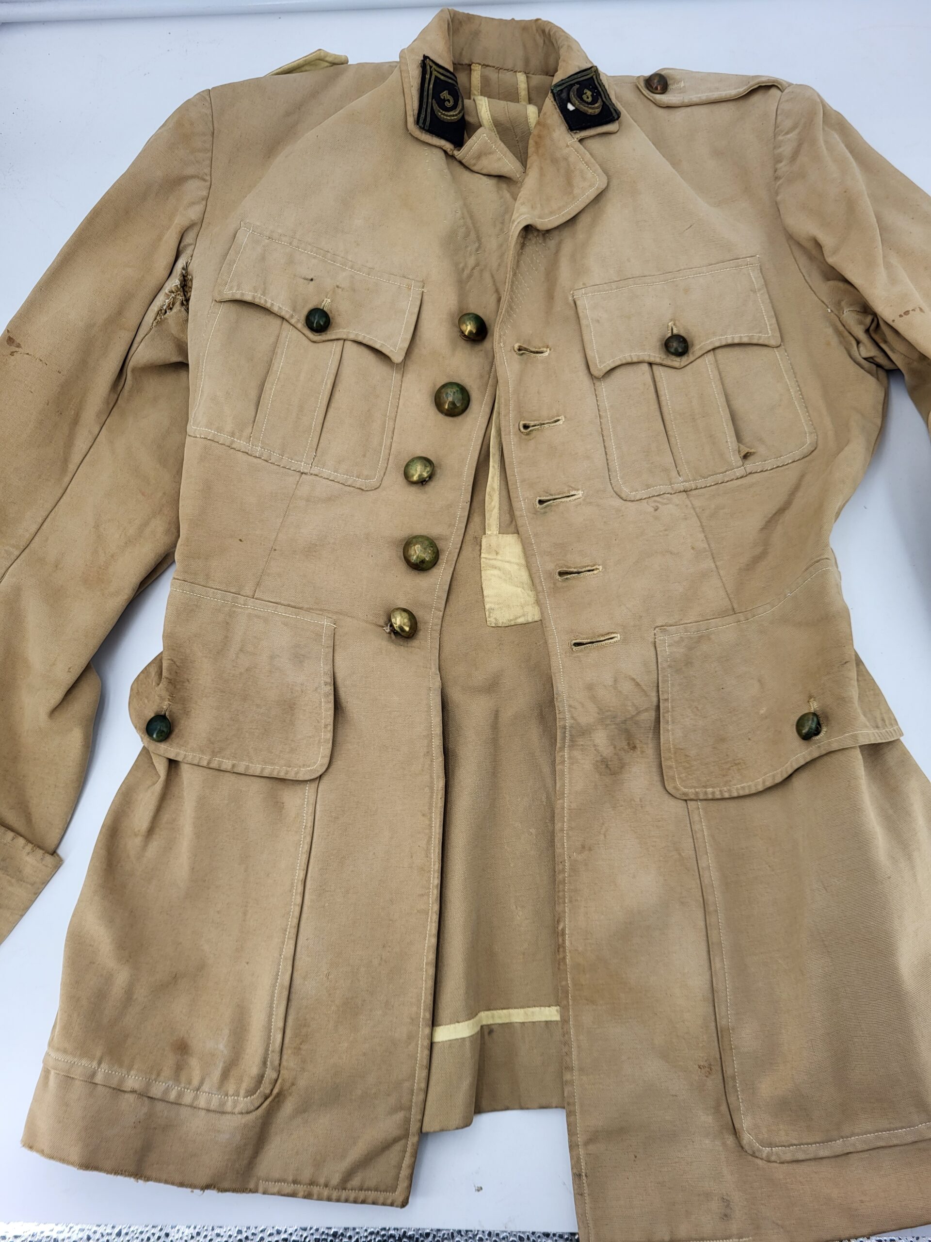 France — original 2eme guerre — ensemble de trois tenues d’un lieutenant du 3eme Spahis Algérien – Un paletot et deux vareuses- Années 30 – Manques boutons sur le paletot – Ensemble dans son « jus » – Bel état – voir photos